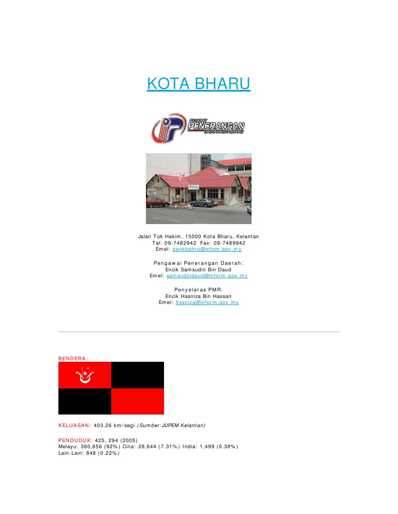 See kubang kerian postcode details below. Domes and mosques dot this city. Jadual waktu solat kota bharu waktu solat adalah peruntukan tempoh atau selang masa tertentu bagi masyarakat muslim menjalani syariat solat sama ada fardhu ataupun sunat. Eyalet içinden yapılan üretim arasında altın, kalay cevheri. Kota bharu, occasionally written as kota baharu, is a city in malaysia that serves as the state capital and royal seat of kelantan.