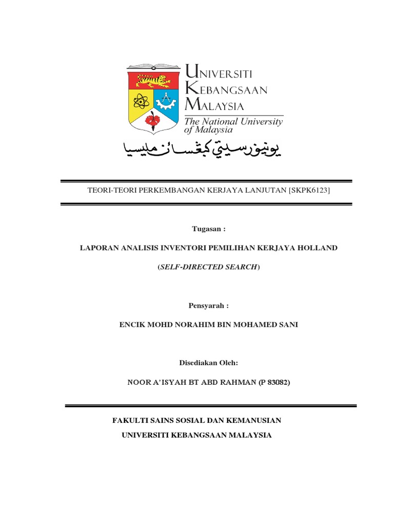 Related : Ujian Minat Kerjaya Holland Pdf : Sidek mohd noah, ph.d bahagian a :.